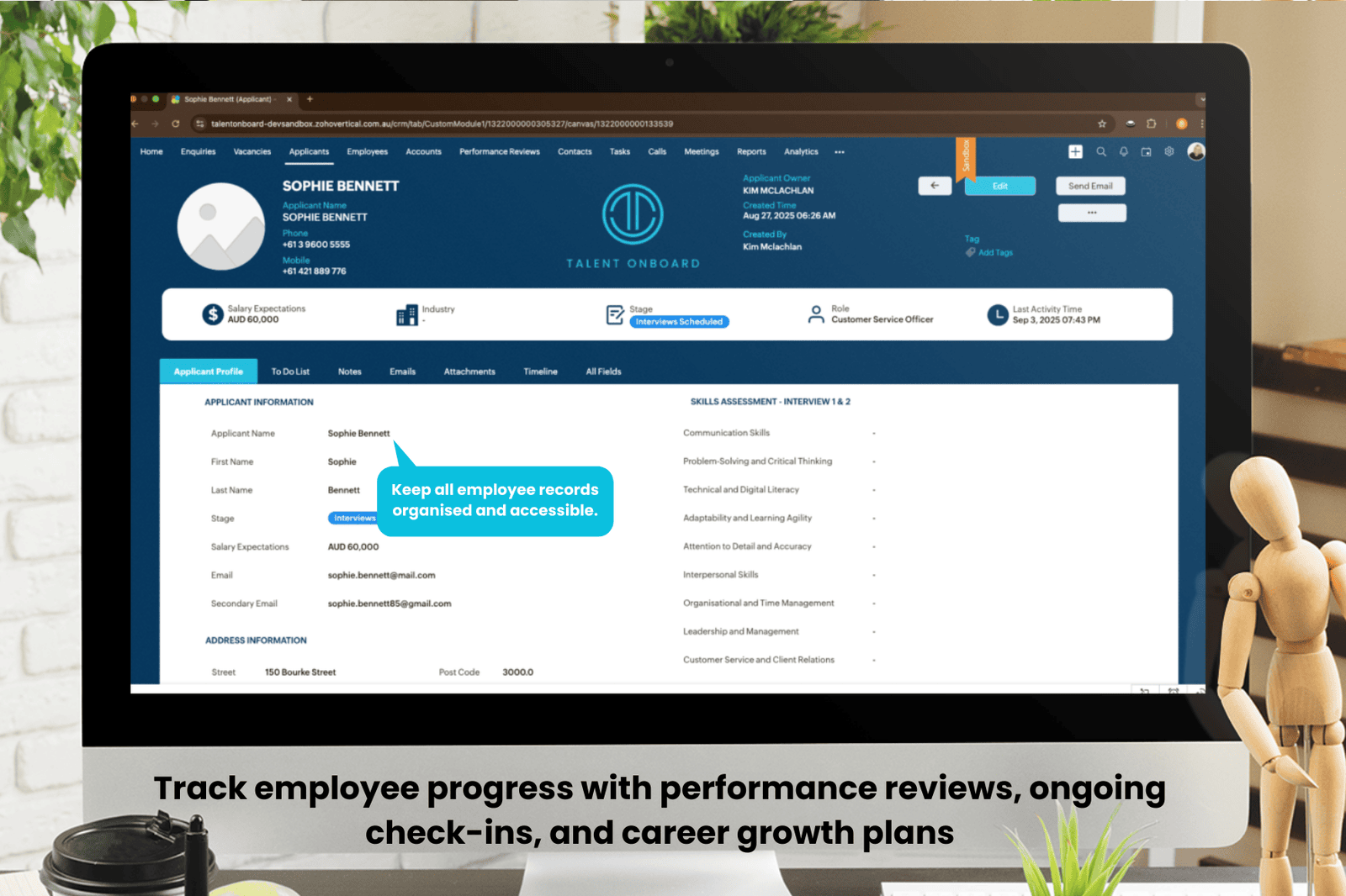 Manage performance reviews and keep top talent engaged through regular check-ins and ongoing communication.