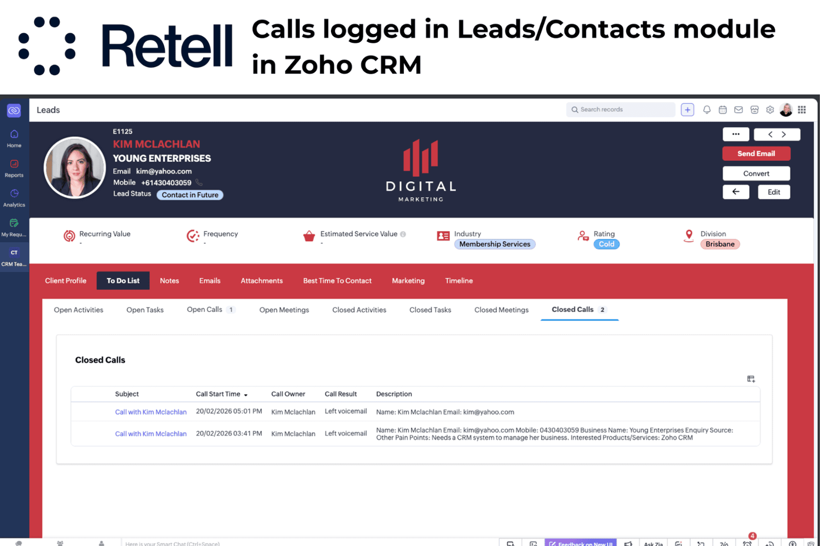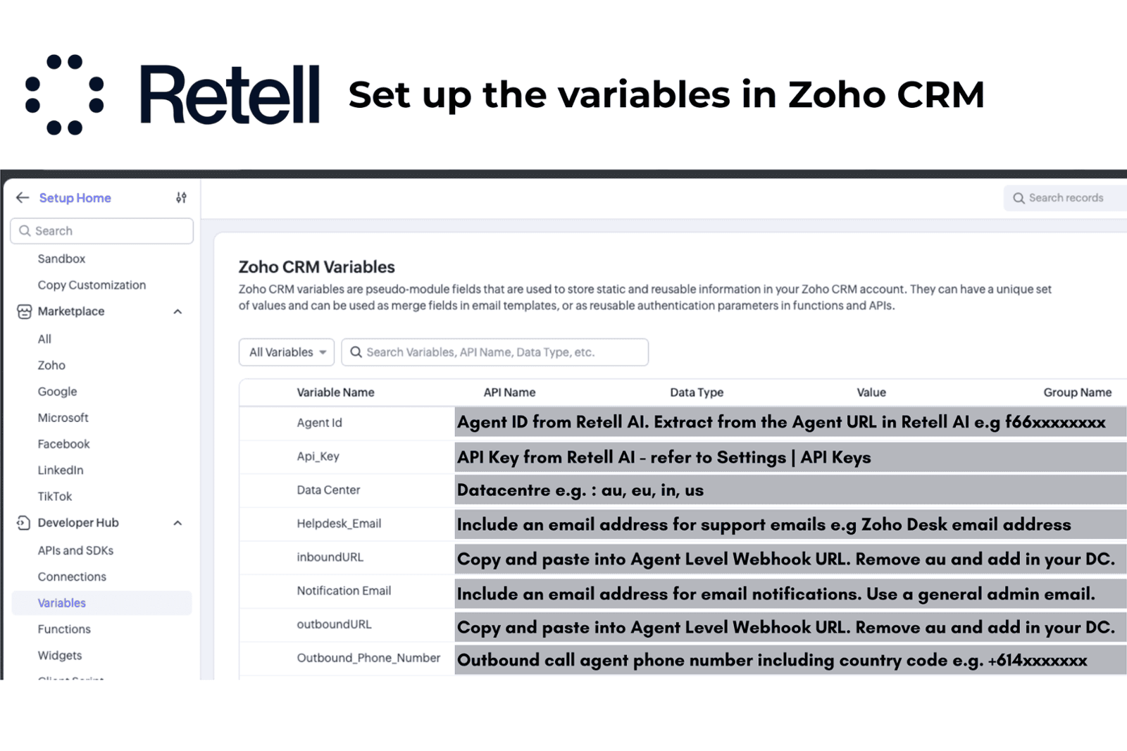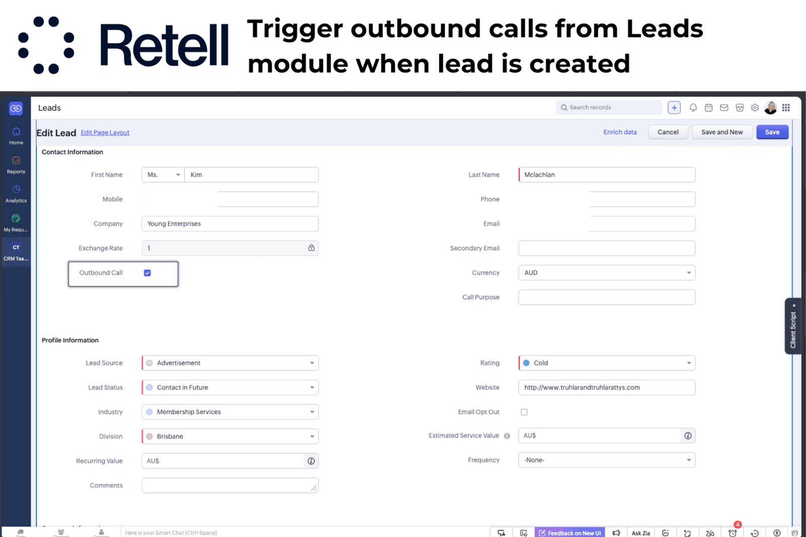 Please note that Retell AI integrations have been built into our ready-to-go CRM solutions and do not require the installation of a separate Zoho CRM extension.
