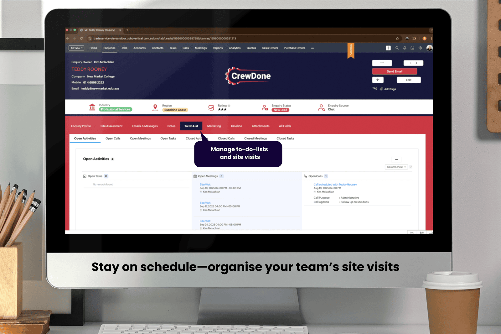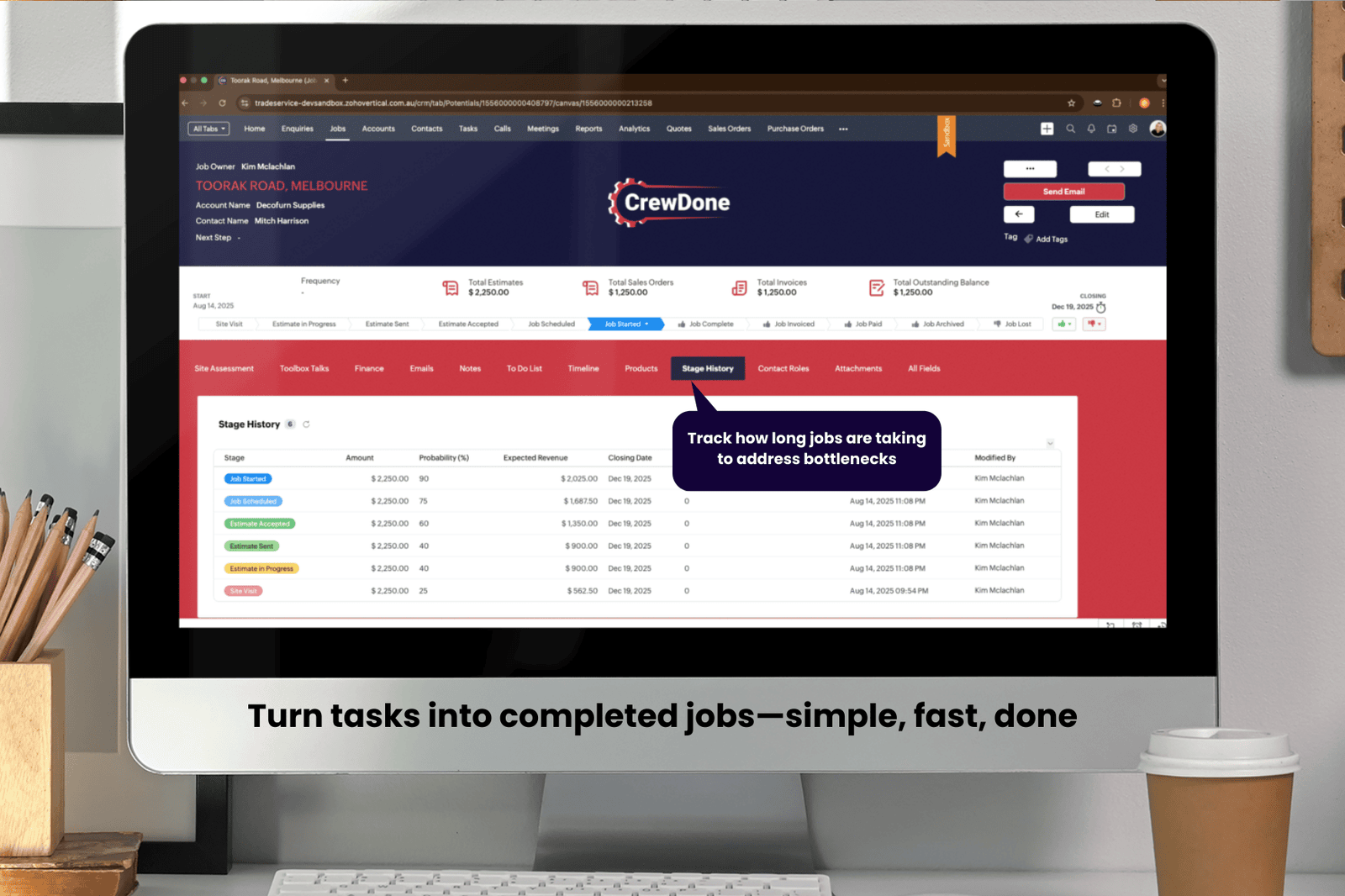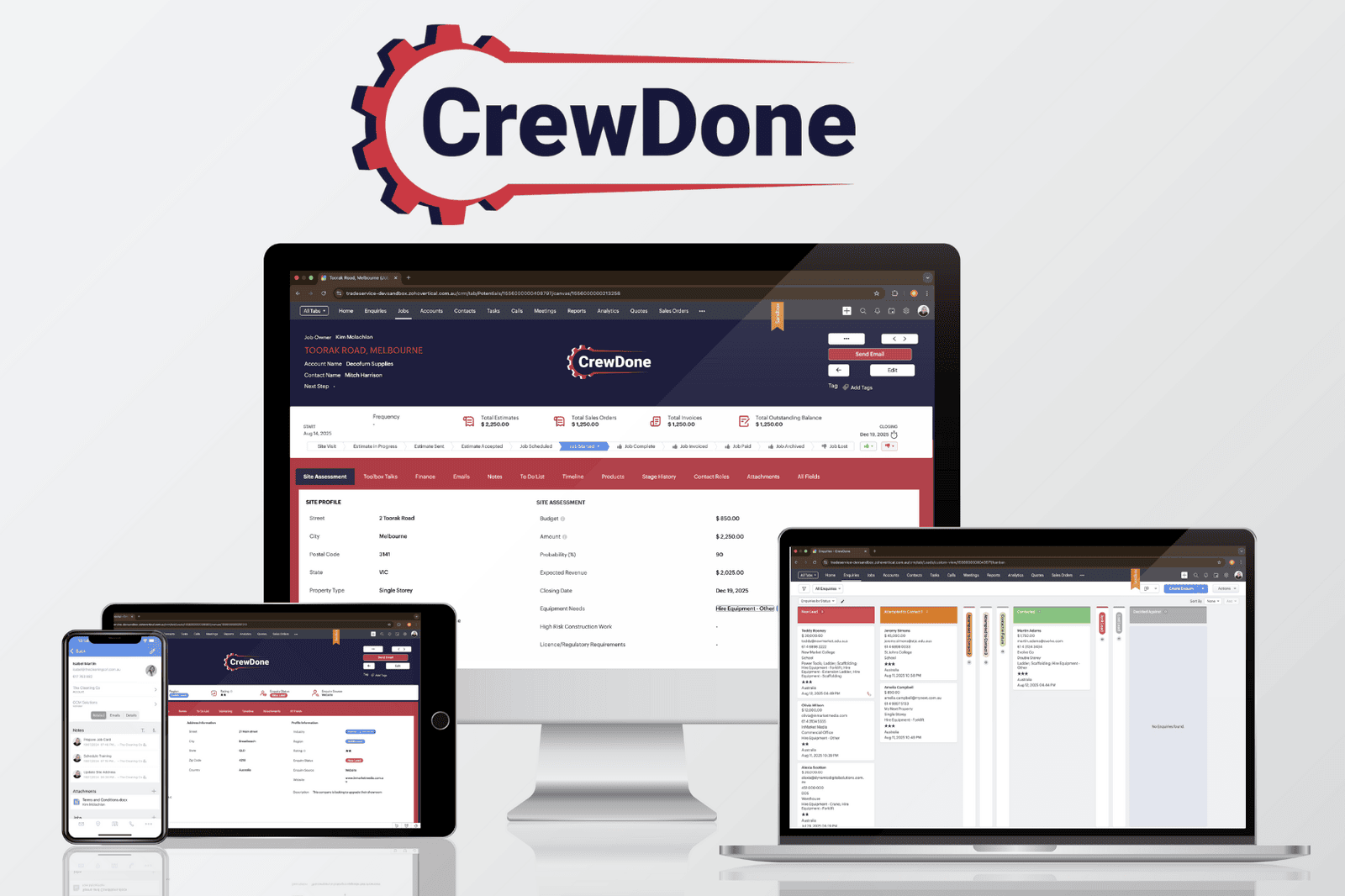CrewDone is a ready-to-go Zoho CRM system designed for tradies and field service companies. It brings your quoting, job scheduling, and customer management together into one powerful yet easy-to-use platform.