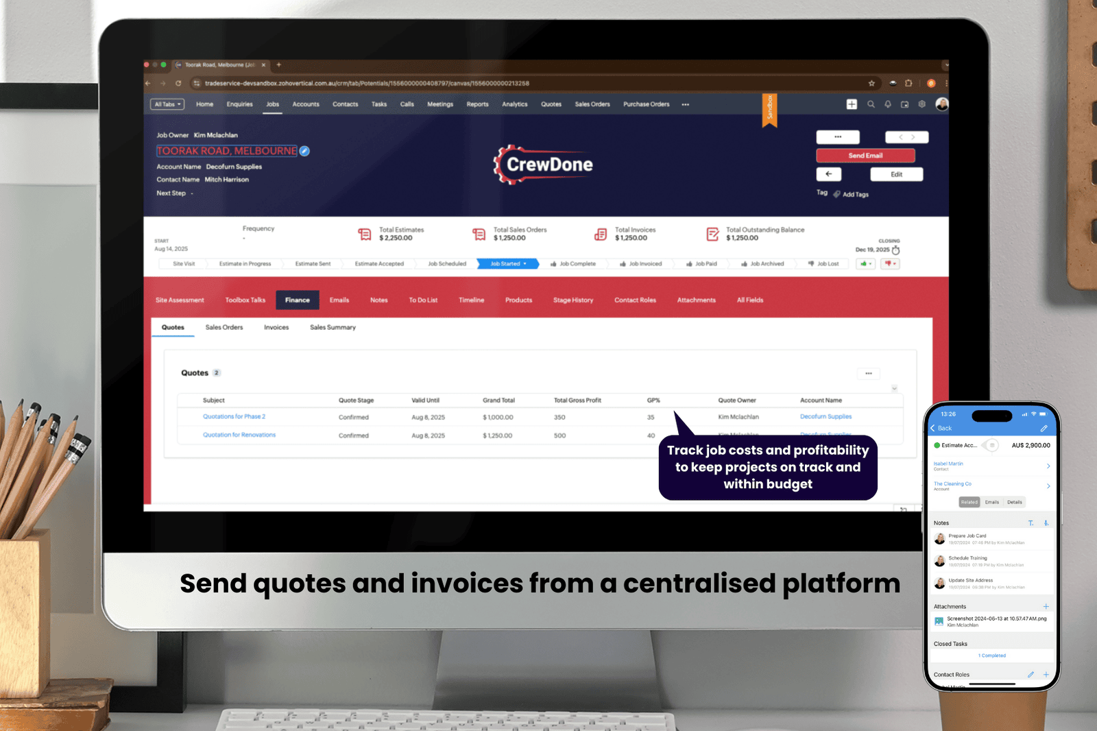 Quote & Invoice Management – Create, send, and track quotes and invoices from your phone or desktop